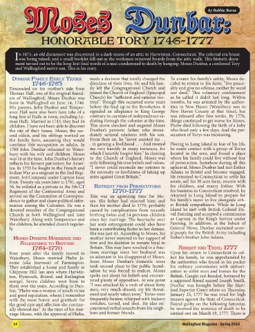 ance Hall were also born here (she of a signaled an allegiance to King George New Haven County at that time), but that one Moses Dunbar of Farmington, and never repudiated his decision to re- Dunbar’s wife was forced to witness the