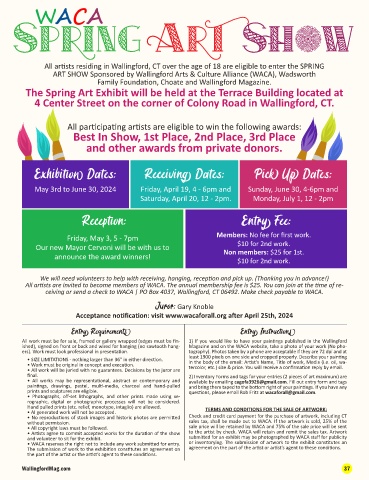 All artists residing in Wallingford, CT over the age of 18 are eligible to enter the SPRING