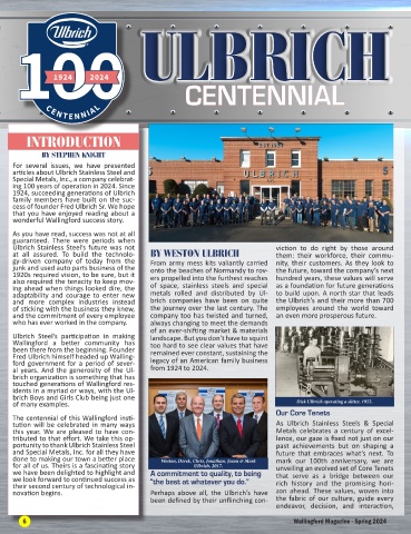 their second century of technological in- rich history and the promising hori- team environment, effective commu- At Ulbrich Stainless Steel and Special shared goal of excellence. Our philan-