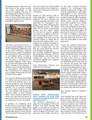 enrich, and inform.” In However, we have year- library highlighting different areas find out more about the services One Book, One Wallingford with