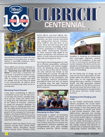 not just manufacturing metal; we're im- growth, and continuously improving Ul- with a passion for the family business. ogies that enhance their operations. A strong company culture has been the