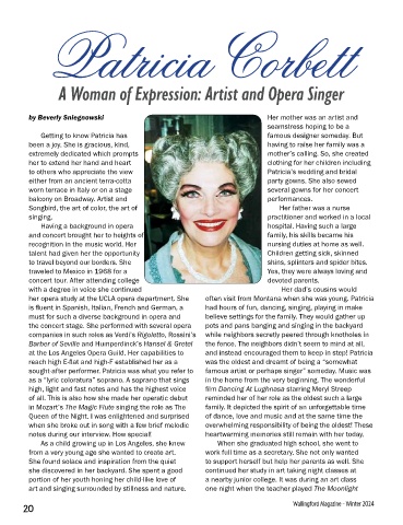 as a “lyric coloratura” soprano. A soprano that sings in the home from the very beginning. The wonderful her major to music and minor to art! Patricia slowly Early in Patricia’s singing career she was asked by
