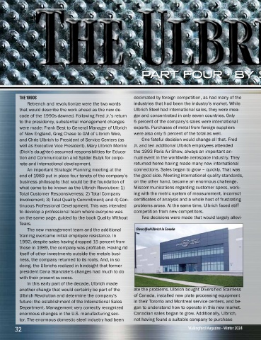 future: the establishment of the International Sales in their Toronto and Montreal service centers, and be- attempts to form similar partnerships and joint ven- In 1997, Ulbrich Stainless Steel and Special Met-
