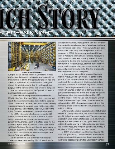 future: the establishment of the International Sales in their Toronto and Montreal service centers, and be- attempts to form similar partnerships and joint ven- In 1997, Ulbrich Stainless Steel and Special Met-