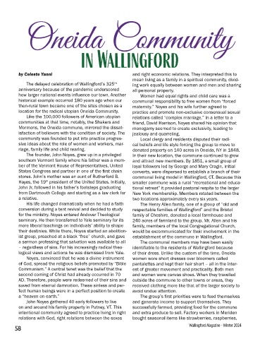 then-rural town became one of the sites chosen as a maternity.” Noyes and his wife further agreed to canned homemade fruit jam, a popular sale item. In In 1869, the industrious Wallingford Oneida com-