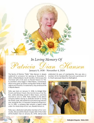 The family of Patricia “Patty” Dian Hansen is deeply celebrated 46 years of membership. She was also a