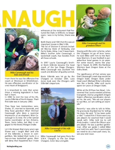 Mike’s brother John Cavanaugh, a the Chargers let go of June Jones,