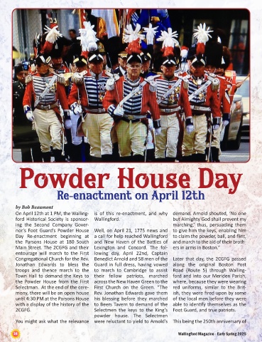 Day Re-enactment beginning at a call for help reached Wallingford to claim the powder, ball, and flint,