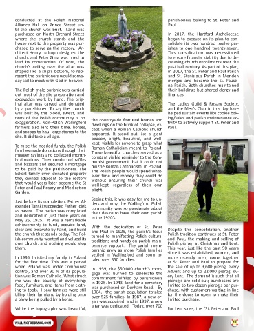 own church, and nothing would stop tenance support. The parish mem- Polish pierogi at Christmas and Lent.