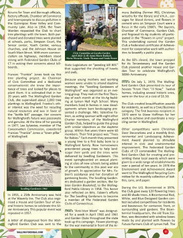 plantings in Wallingford. Frankie’s oth- members lived in homes in new devel- The Club created beautification awards