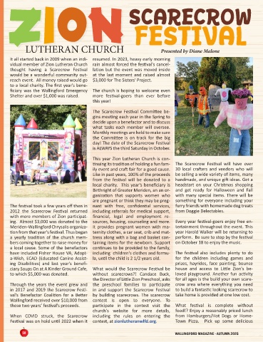 ciary Soups On at A Kinder Ground Cafe, What would the Scarecrow Festival be house and access to Little Zion's be-